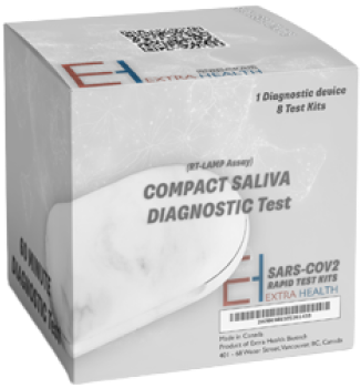 Home and Office Fast, Affordable LAMP-Assay Test kit. It is a saliva-based test with 100% accuracy, with the results verified by a health care professional remotely.